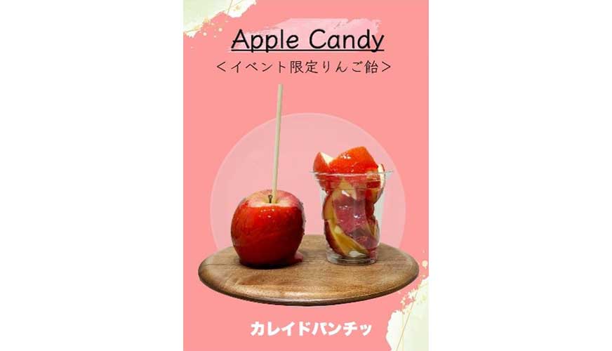 キラキラ輝くカットりんご飴を提供するキッチンカー。写真映えする見た目と食べやすさでイベントを彩ります。