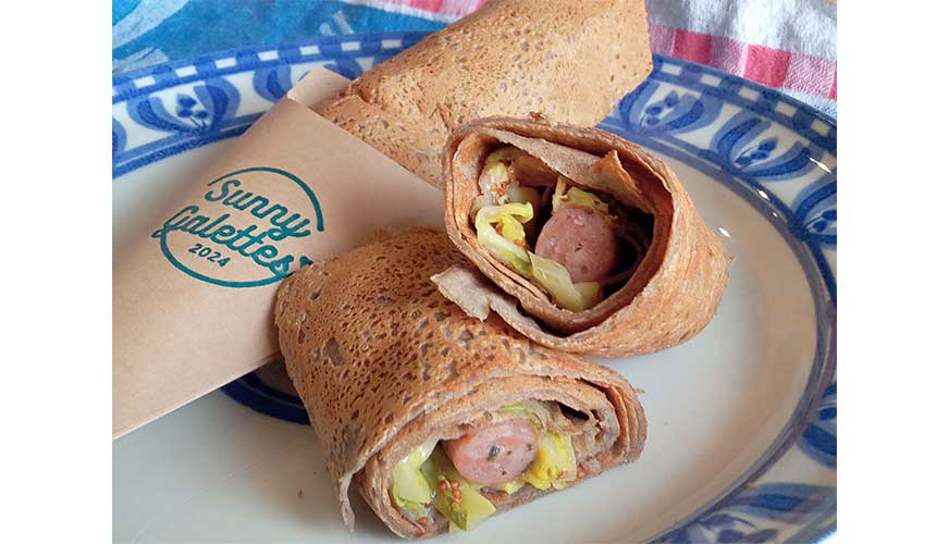 そば粉ガレット専門のキッチンカーです。行者にんにく入りソーセージを使ったガレットソシスが看板メニュー。発酵バターで焼き上げます。