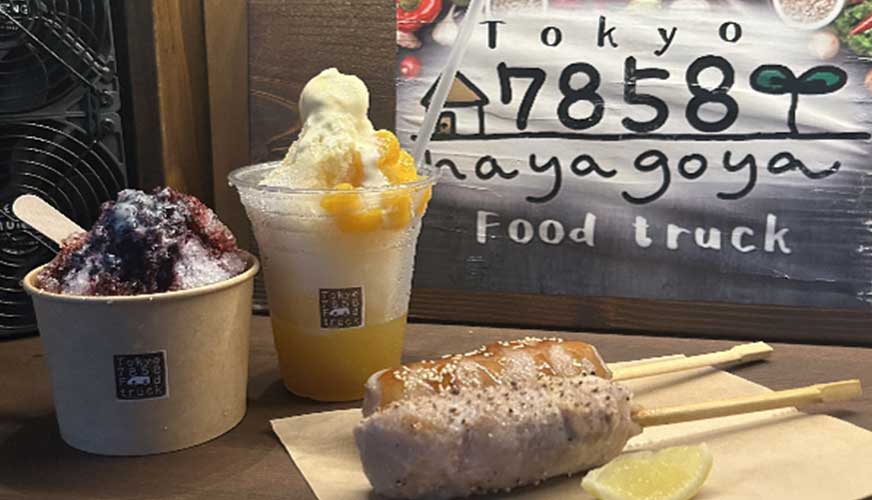 日野市南平の空き家7858Base発、食べ歩きにピッタリな産直ワンハンドグルメ。名物は手巻きのオリジナル肉巻きおにぎり&自家製とろとろ果肉のかき氷スイーツ♪